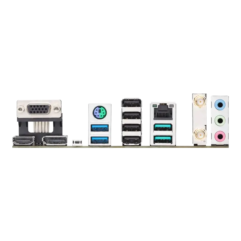 2 x USB 3.2 Gen 2 ports (2 x Type-A) 2 x USB 3.2 Gen 1 ports (2 x Type-A) 4 x USB 2.0 ports (4 x Type-A) 1 x DisplayPort 1 x VGA port 1 x HDMI® port 1 x Wi-Fi Module 1 x Realtek 2.5Gb Ethernet port 3 x Audio jacks 1 x BIOS FlashBack™ button 1 x PS/2 Keyboard/Mouse combo port |