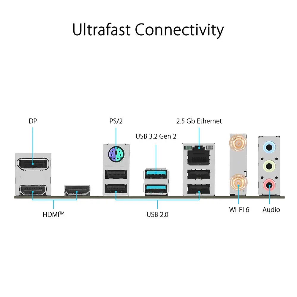 The ASUS motherboard is designed to support latest Intel Socket LGA 1700 for 13th Gen and 12th Gen Intel Core processors, Pentium Gold and Celeron Processors.