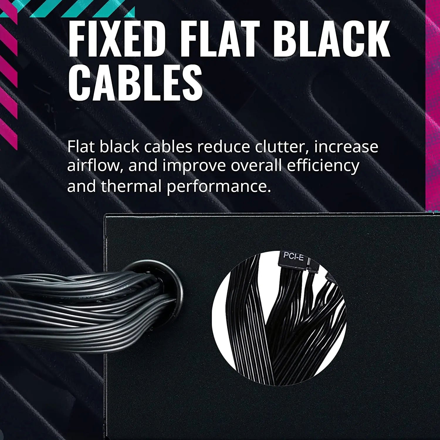 Cooler Master G800 Gold PSU comes with 80 Plus Gold certification. It is designed to deliver 800 Watts at a typical minimum efficiency of 90%.