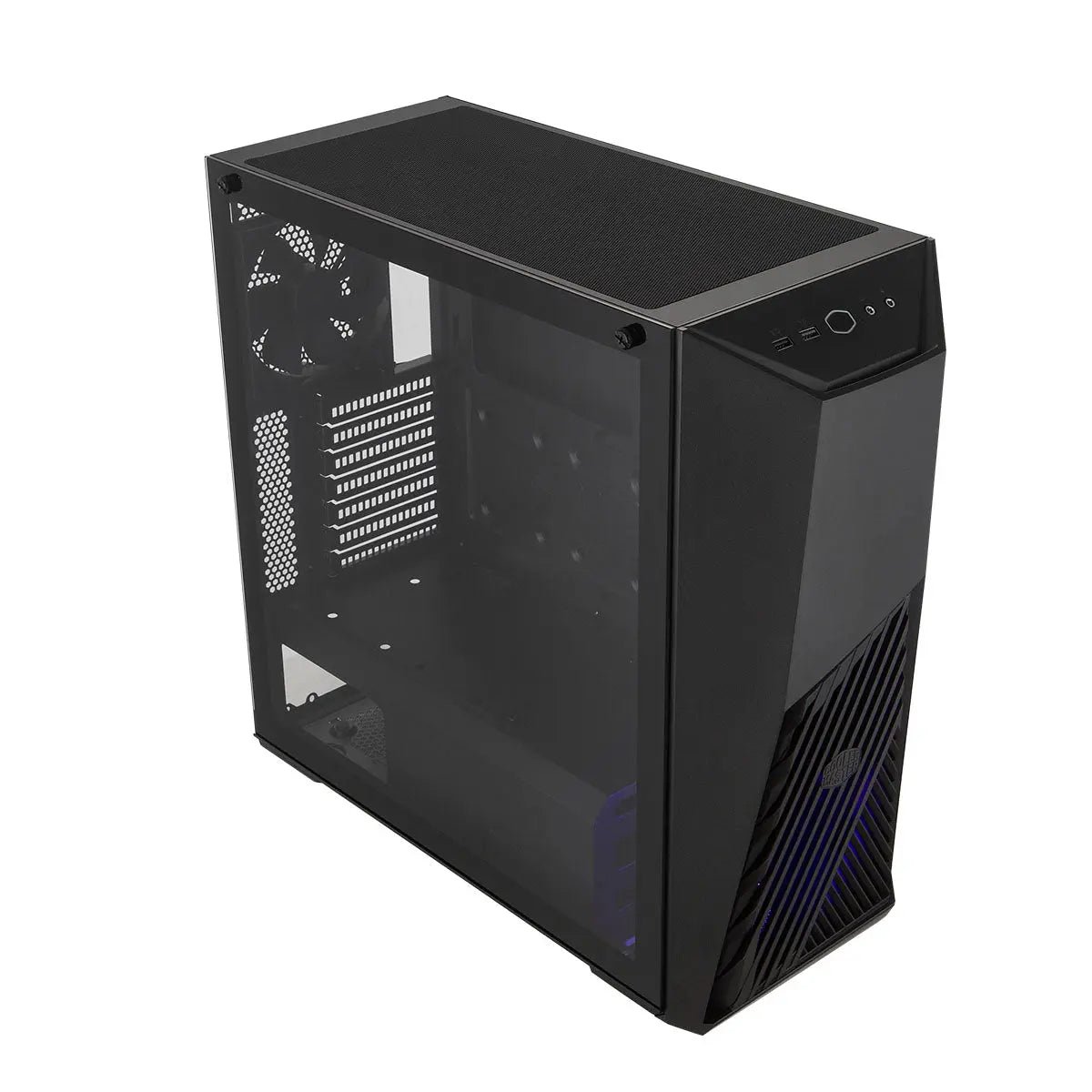 Gaming is in the core of the new MasterBox K501L. Donning an illuminated fan against the angled front panel ventilation speaks to its competitive character. Support of gaming hardware like long graphics cards, plenty of storage, and liquid cooling take priority in the K501L while still leaving room for future upgrades.