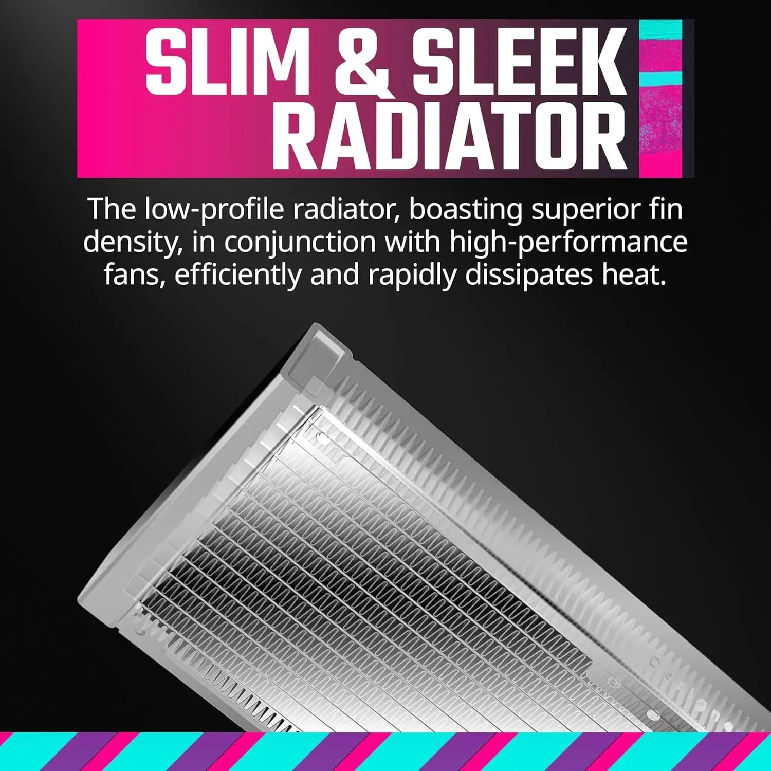 Large 360mm Radiator: Features a substantial 360mm radiator designed to provide superior thermal dissipation, effectively cooling high-performance CPUs and supporting overclocking.